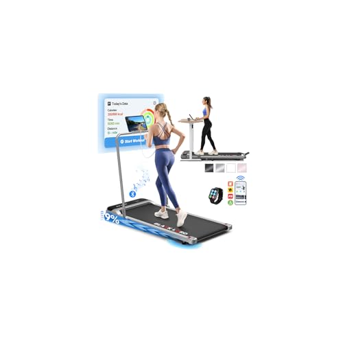 COSMO BUY Folding Electric Walking Pad Treadmill For Home Office Gym Compact Running Machine NO ASSEMBLY With Handle Bar LED Display Bluetooth Speaker Adjustable Speed 1-10KM/H Phone & Bottle Holder