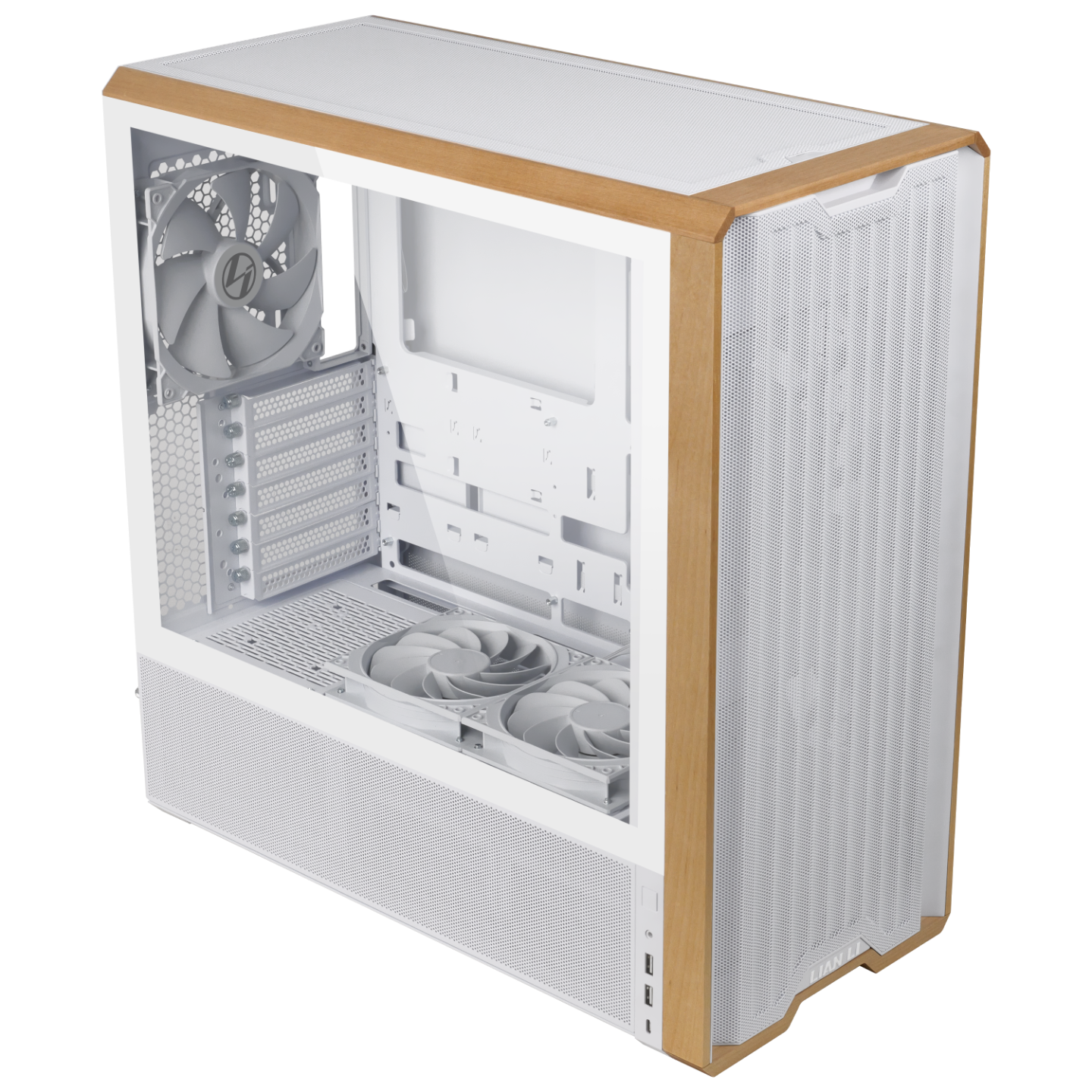 Lian Li Lancool 217 E-ATX Tempered Glass Dark Wood Gaming Case - White