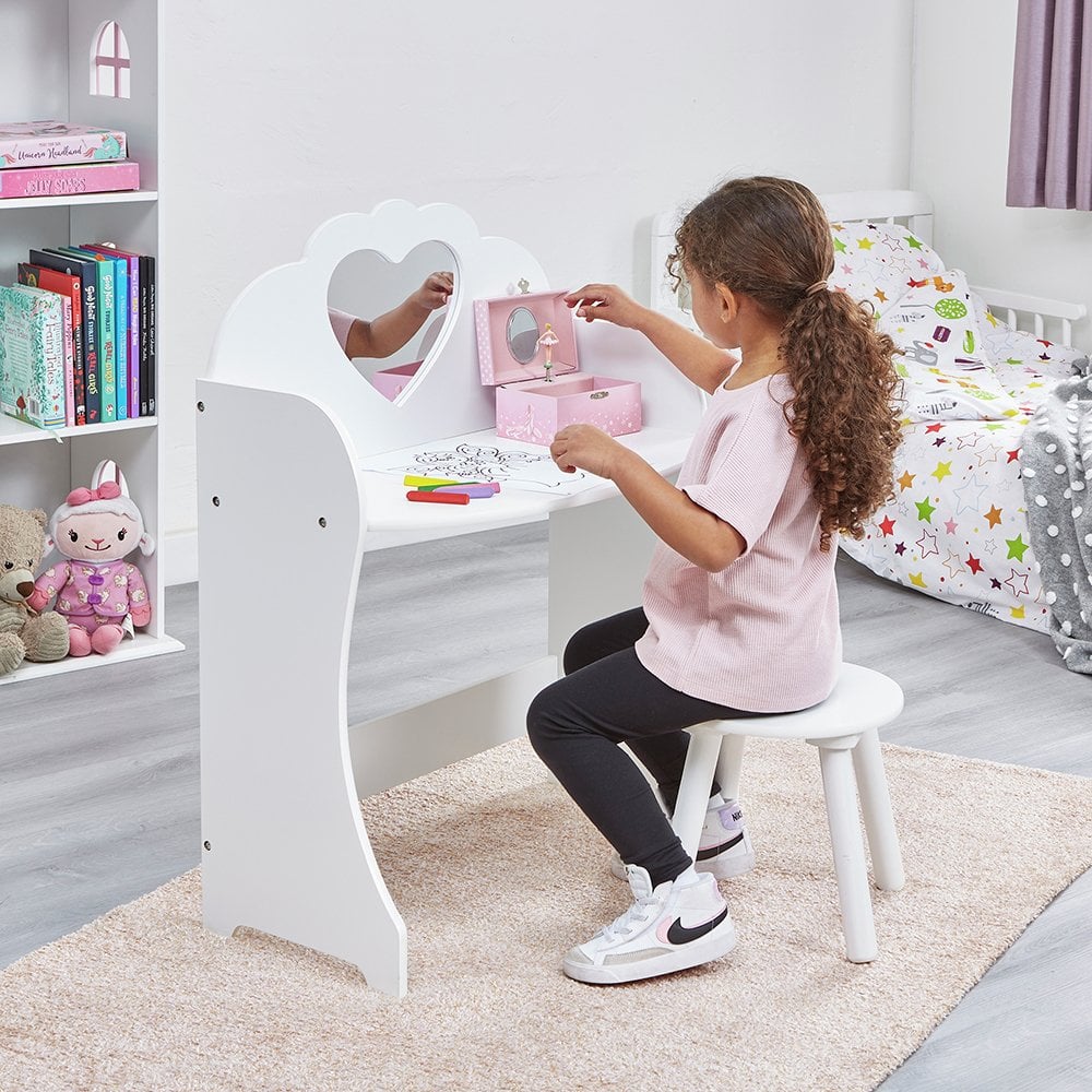 Liberty House Toys Children's White Wooden Table & 2 Chairs Set, Engineered Wood, 53.5cm H W x 60cm D