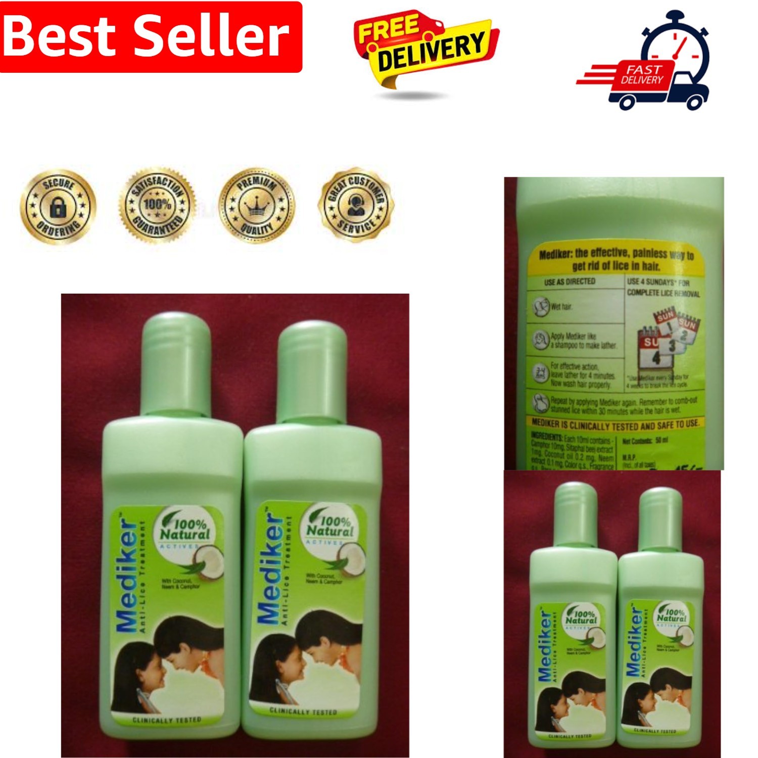Mediker Anti Lice Remover Treatment Head Shampoo 100% Lice Remove 50ml Pack of 2