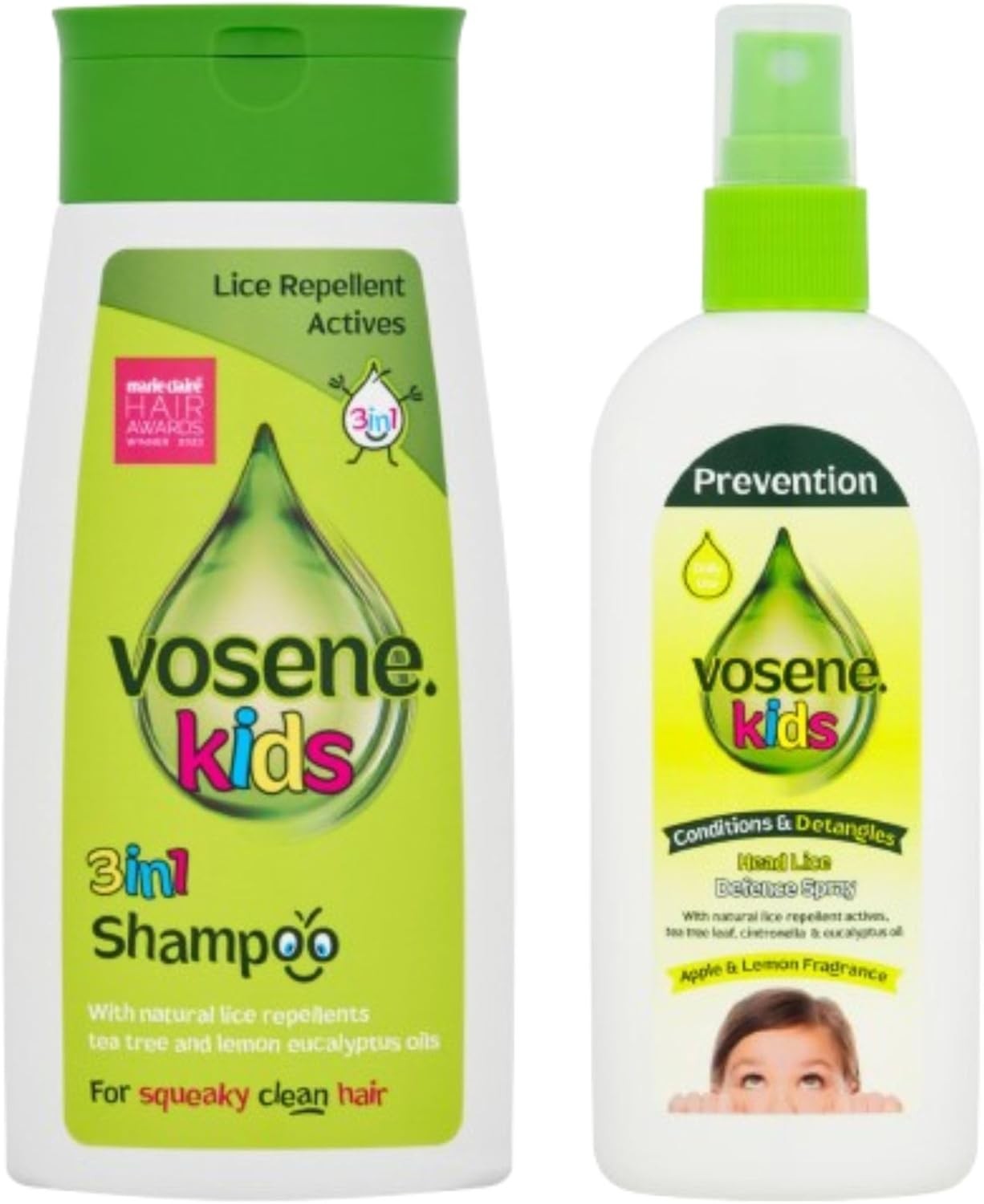 Head Lice Repellent Vosene Kids 3 in 1 Shampoo + Conditioning Defence Spray Set