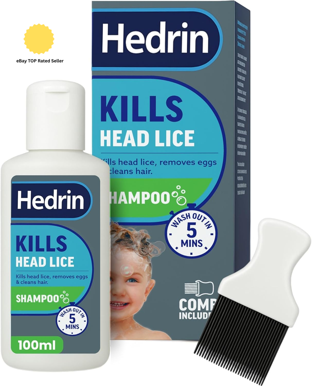 Hedrin Head Lice Shampoo and Comb Kit, Kills Eggs in 5 100ml