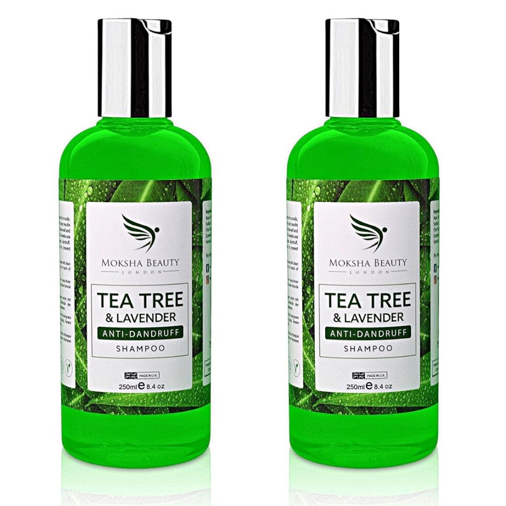 Tea Tree Oil Anti Dandruff Shampoo - 2 Pack [Made In UK] Therapeutic Grade | Antifungal for Dry Itchy Flaky Scalp and Hair | Prevents Head Lice Men