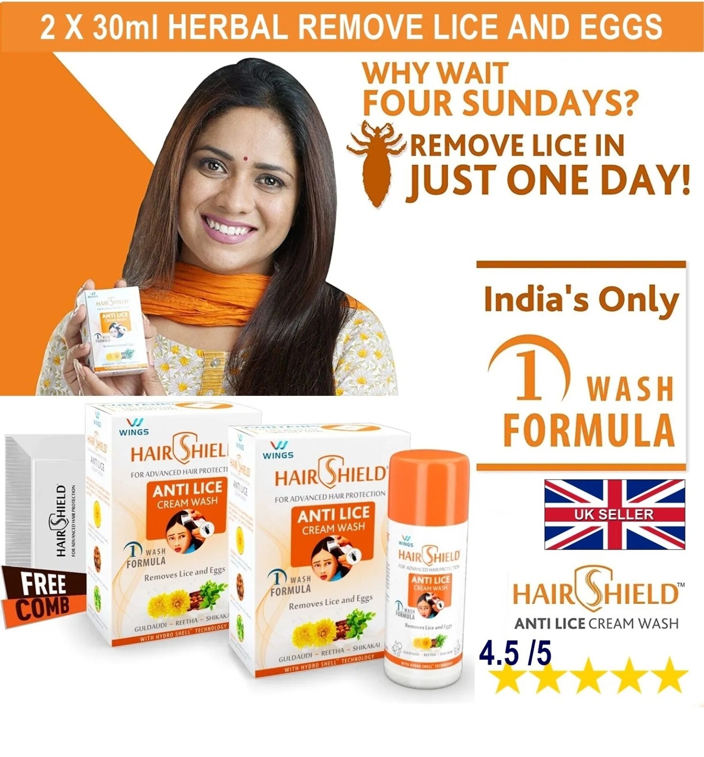 KILL HEAD LICE HERBAL 🇬🇧 2x 30ml HAIR SHIELD nits egg cream HEADWASH SHAMPOO
