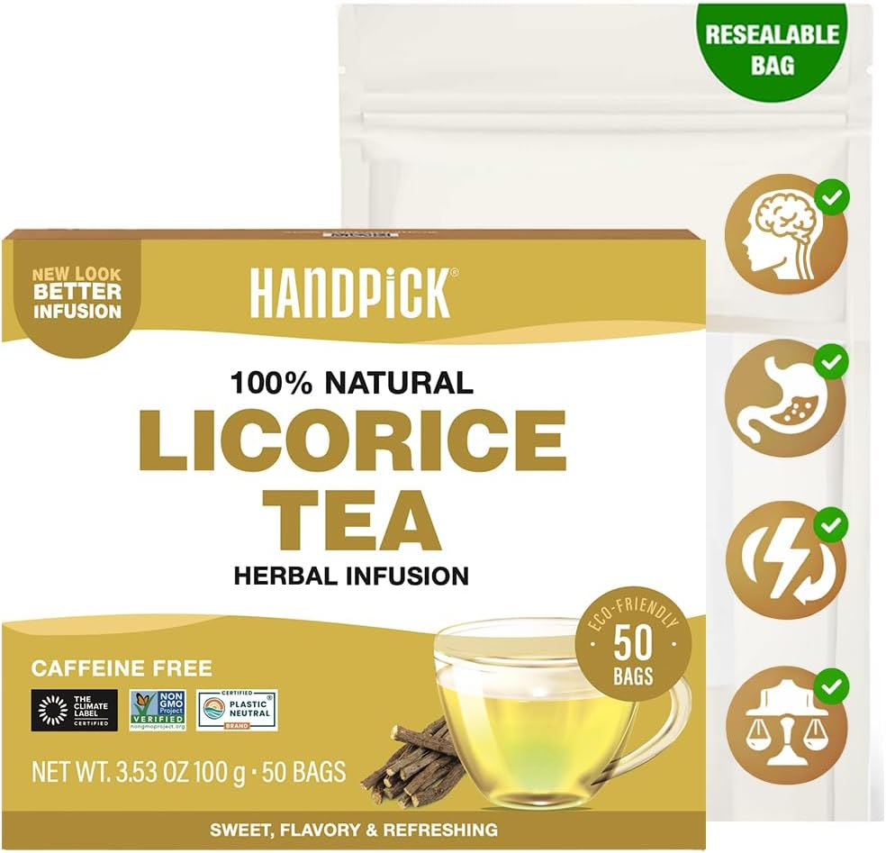 HANDPICK Licorice Root Tea Bags, 50 Count, Non-GMO, Caffeine-Free