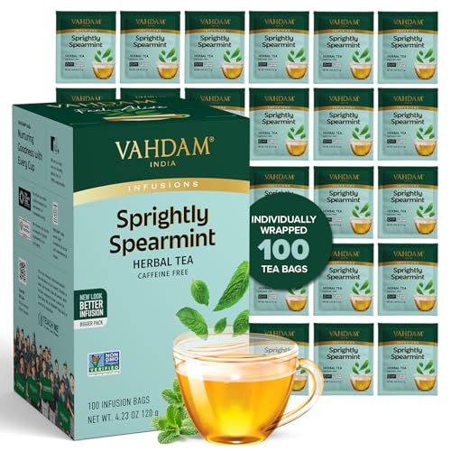 VAHDAM, Sprightly Spearmint 2-in-1 Wellness Blend, 100 Tea Bags | Spearmint + Licorice Root | Caffeine Free, Non-GMO, Direct from Source, Eco-Friendly Individually Wrapped Tea Bags