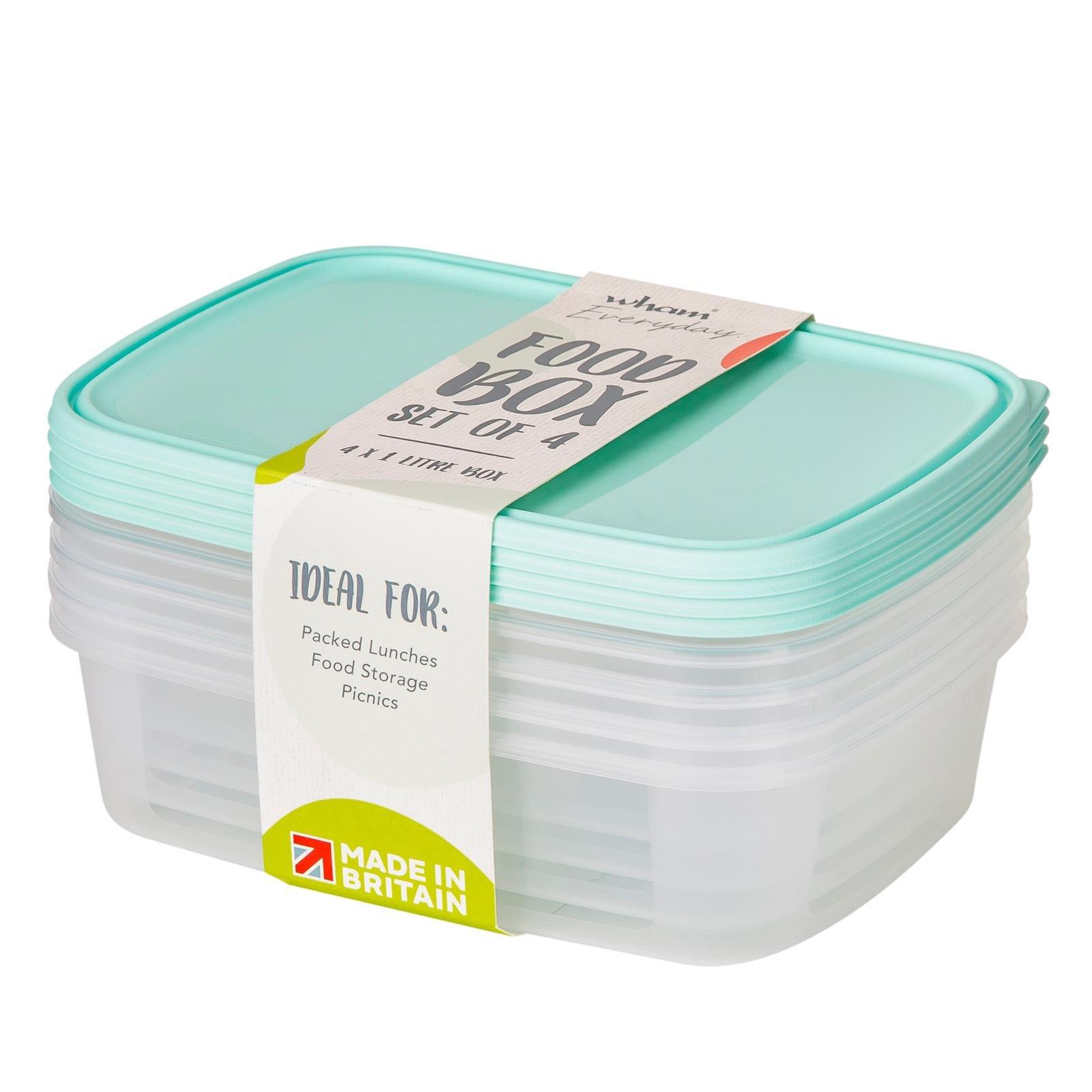 Storage Set of 4 1L Tub Food Lunch Box Kids Takeaway Plastic Lid Container