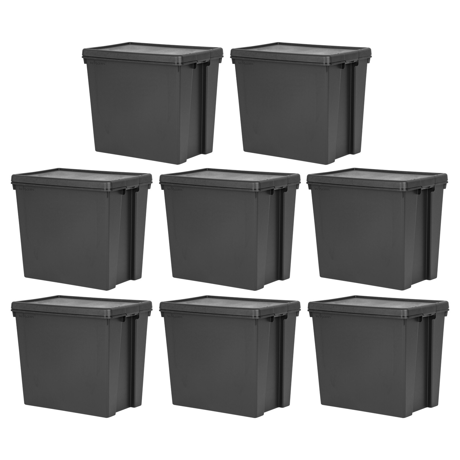 Set of 8 BLACK 62L Heavy Duty Storage Boxes With Lid Recycled Plastic Container