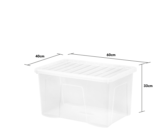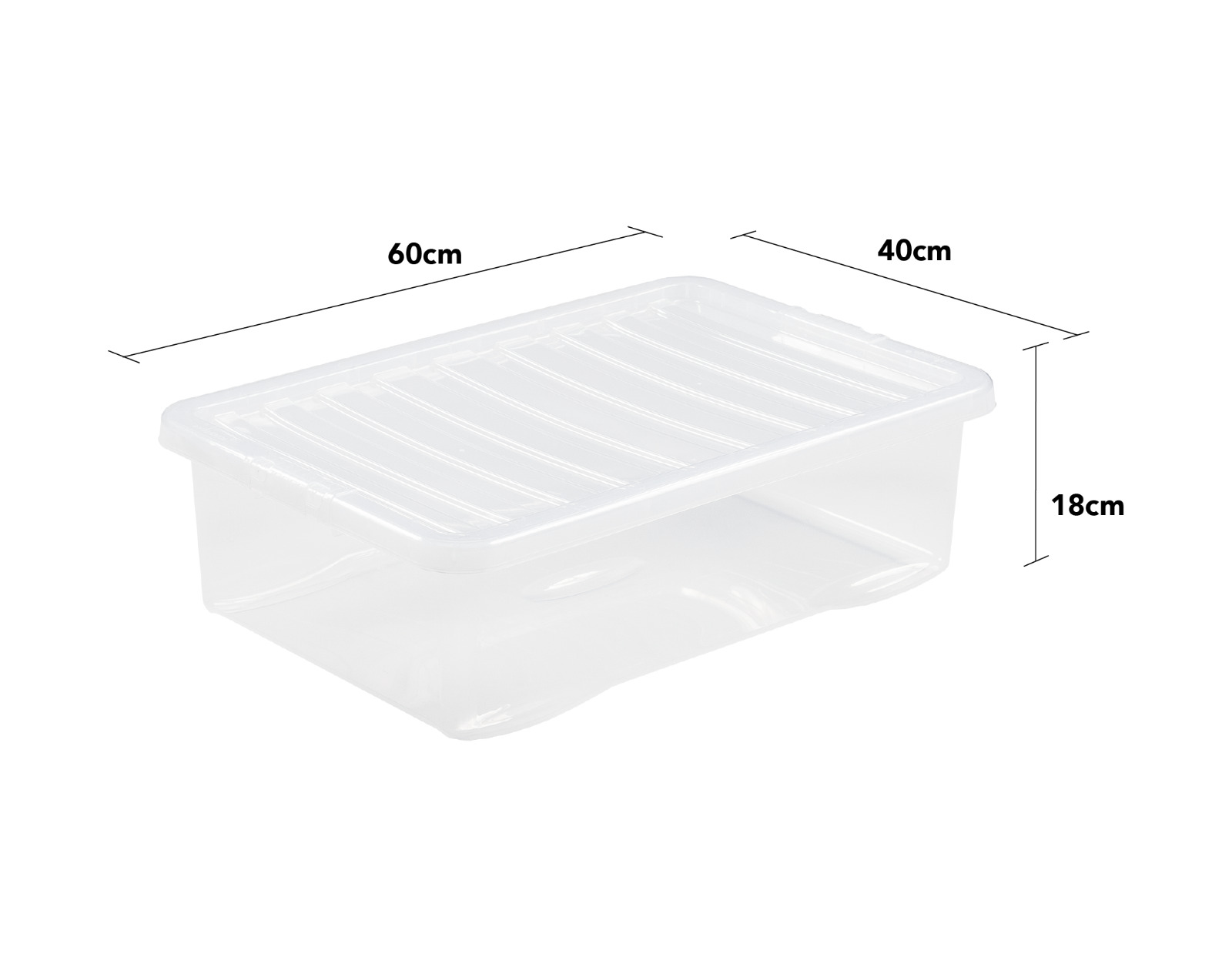 32 Litres Storage Box with Lid Underbed Clear Plastic Container - UK Made