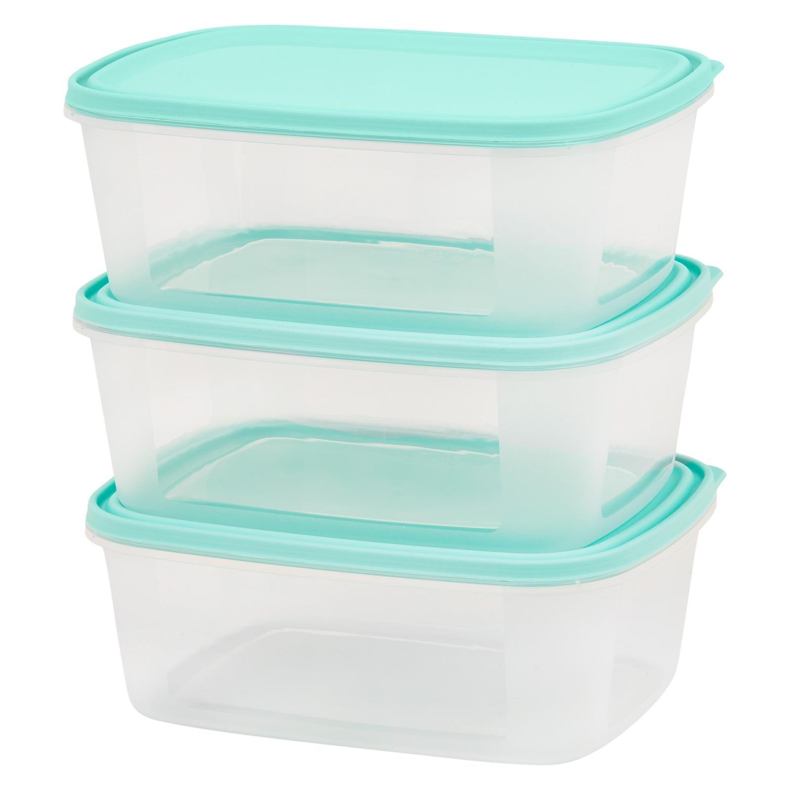 Storage Set of 3 2L Tub Food Lunch Box Kids Takeaway Plastic Lid Container