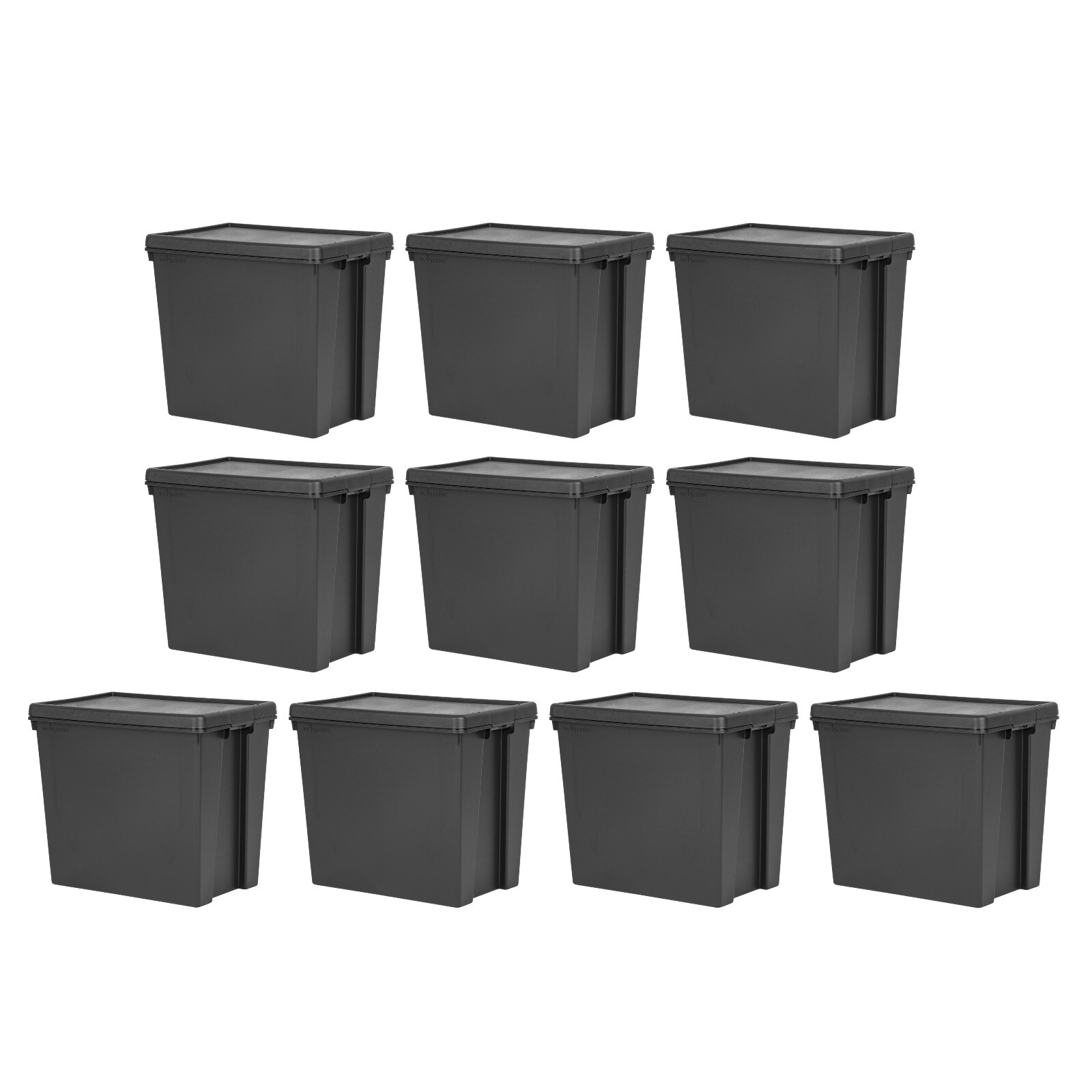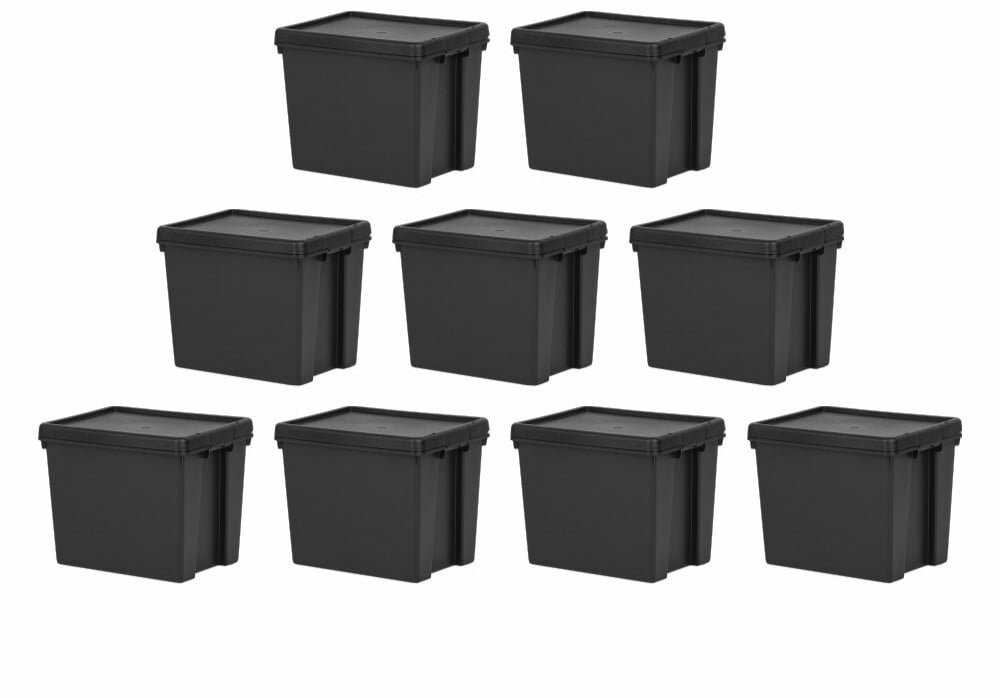 10 x 24L Heavy Duty Black Storage Box Lid Recycled Plastic Stackable Container