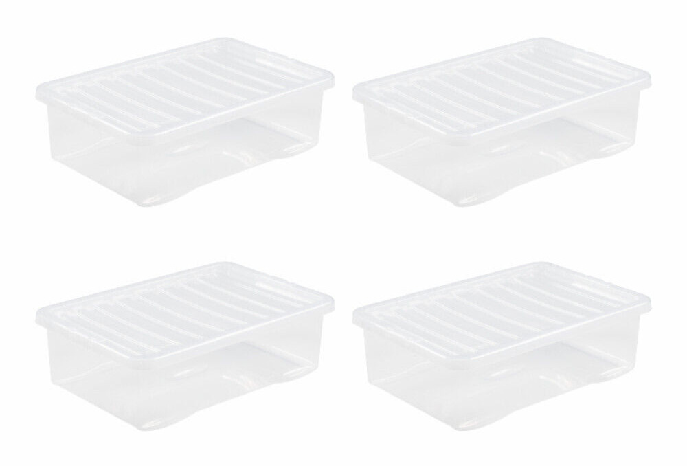 (Set of 4) 32L Storage Box with Lid Underbed Clear Plastic Container Home Office