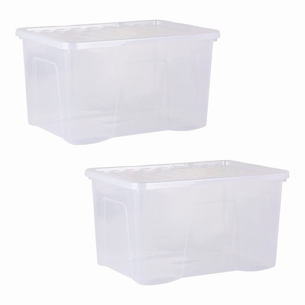 2 x 60L Storage Box with Lid Clear Plastic Stackable Container Home Office - UK