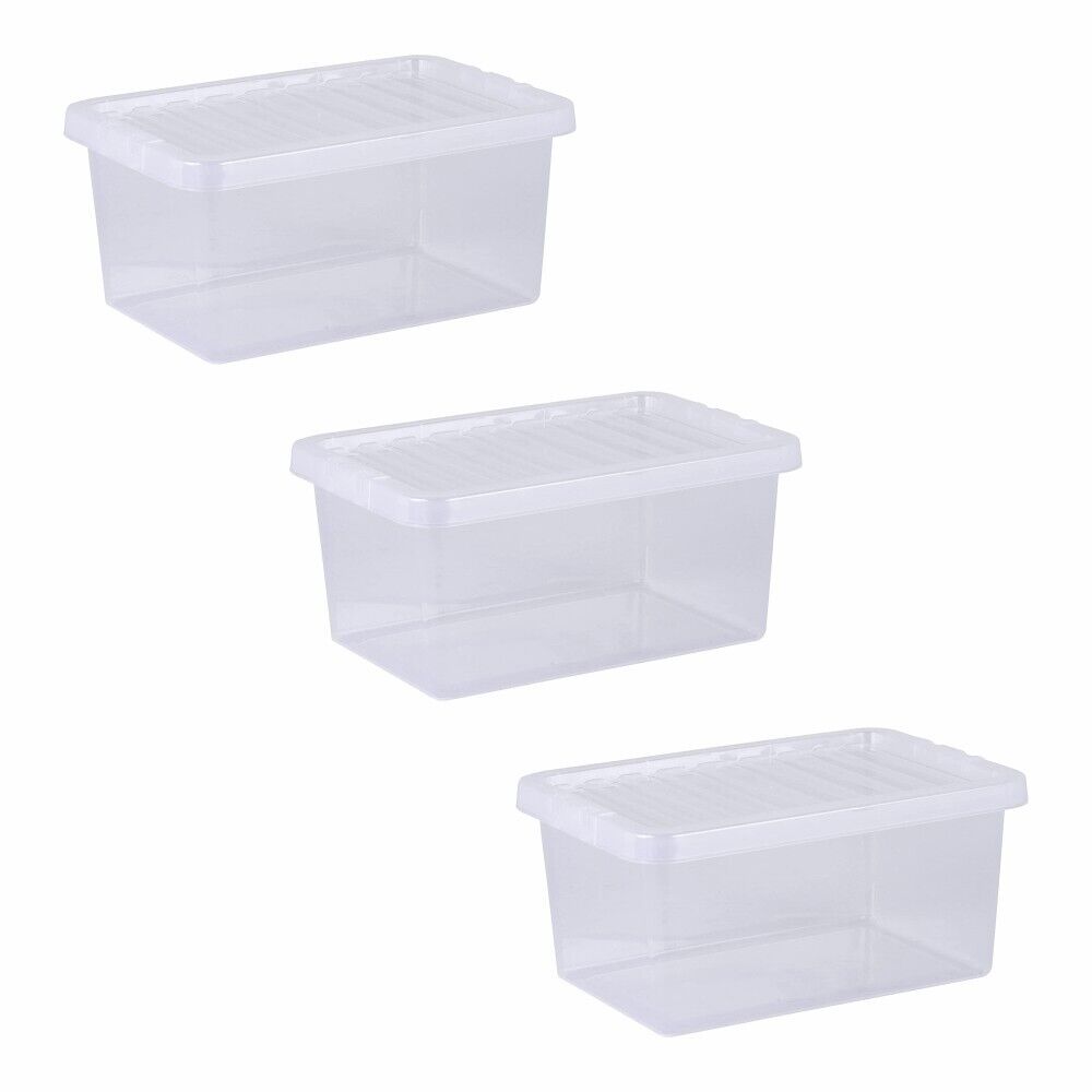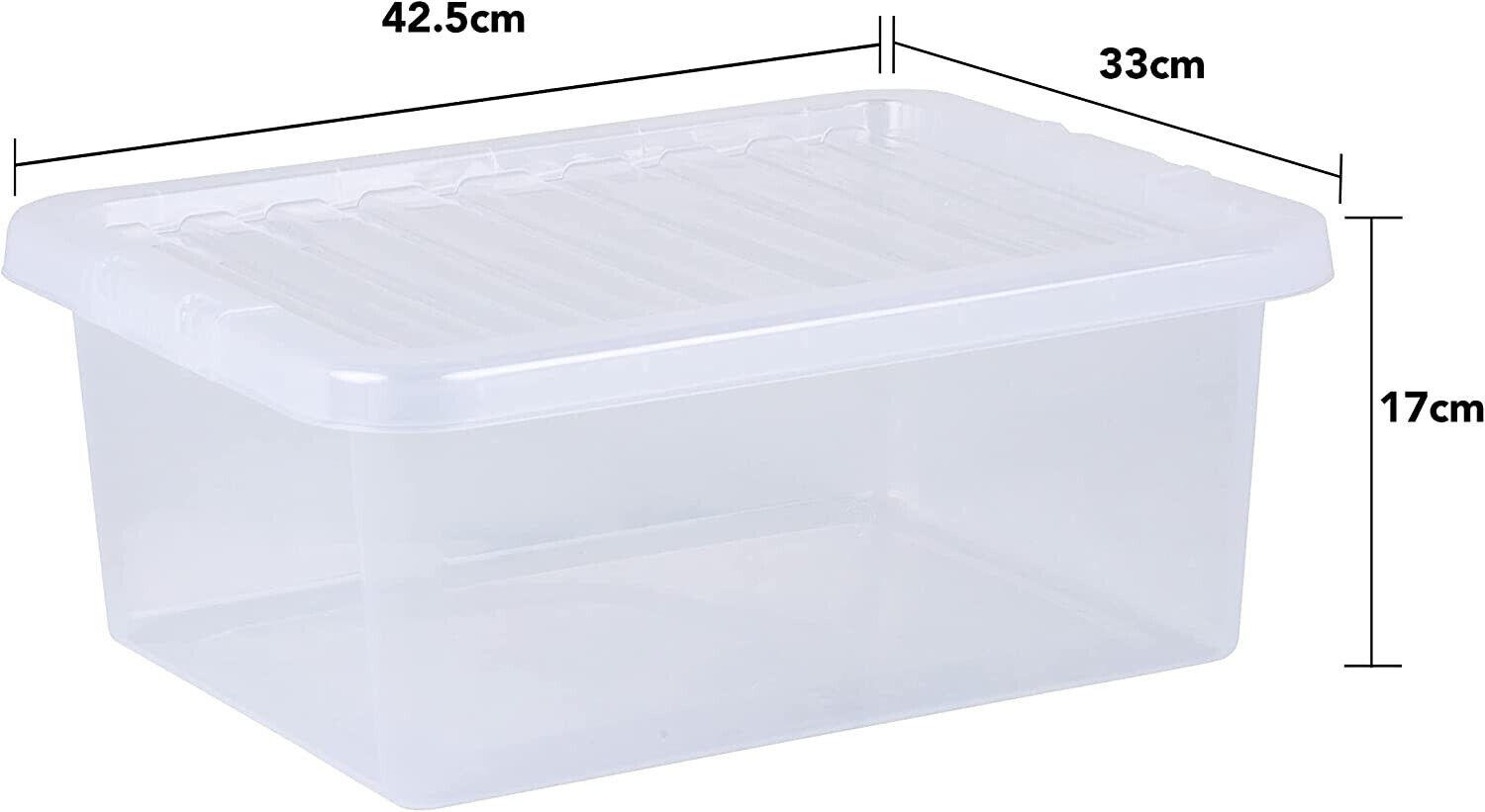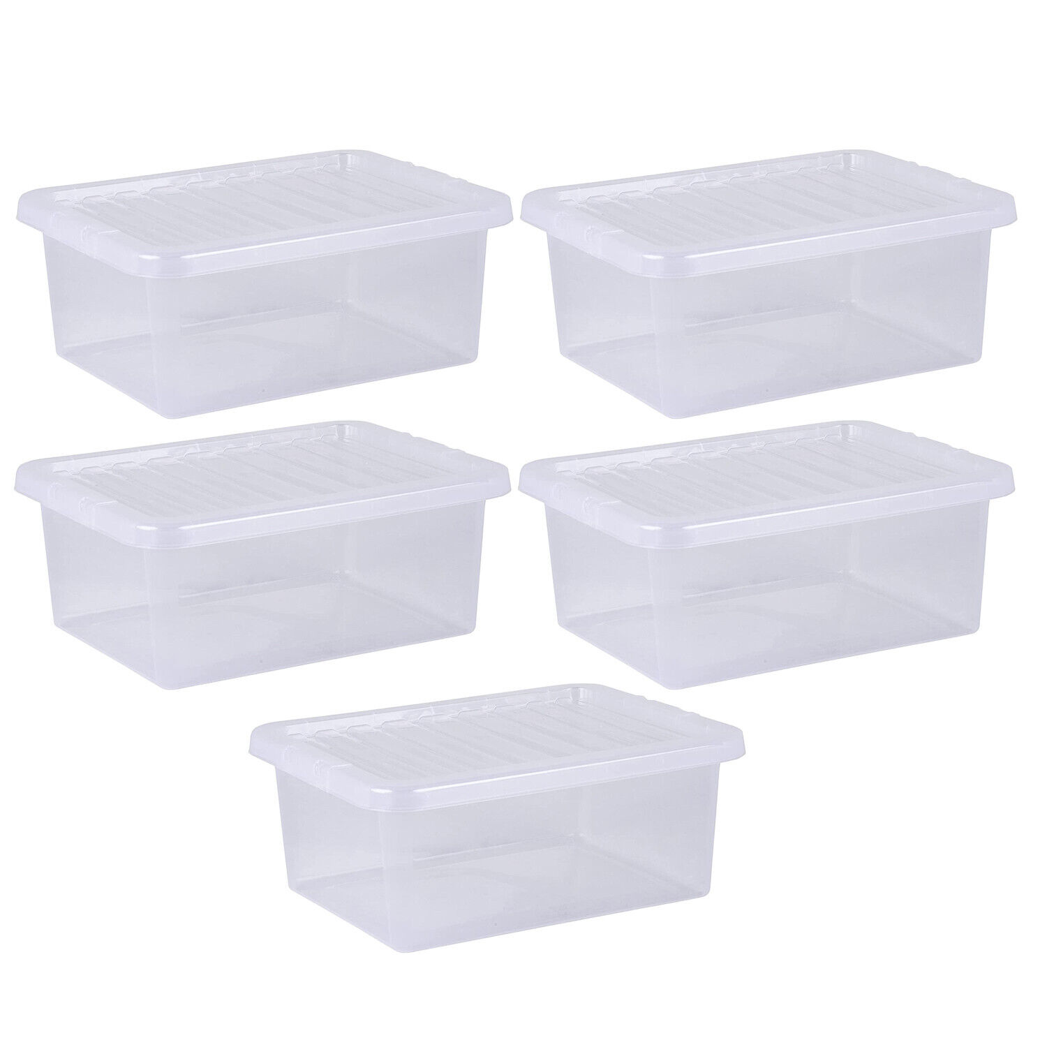 5 x 17L Storage Box with Lid Clear Plastic Stackable Container Home Office - UK