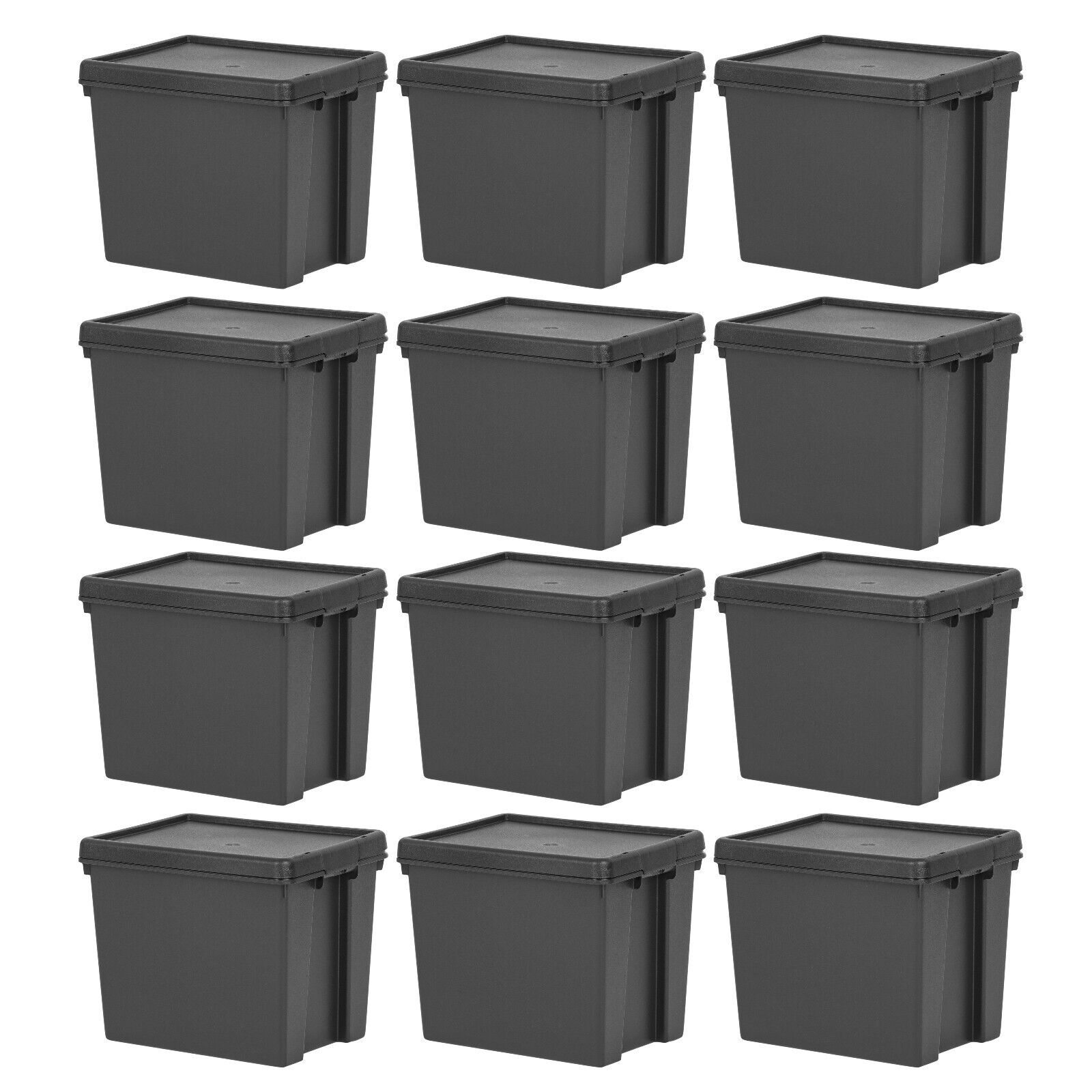 [Set of 12] 24L Heavy Duty Black Storage Box Lid Recycled Plastic Container