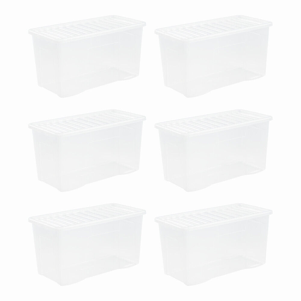 6 x Extra Large 110L Storage Box with Lid Clear Plastic Stackable Container - UK