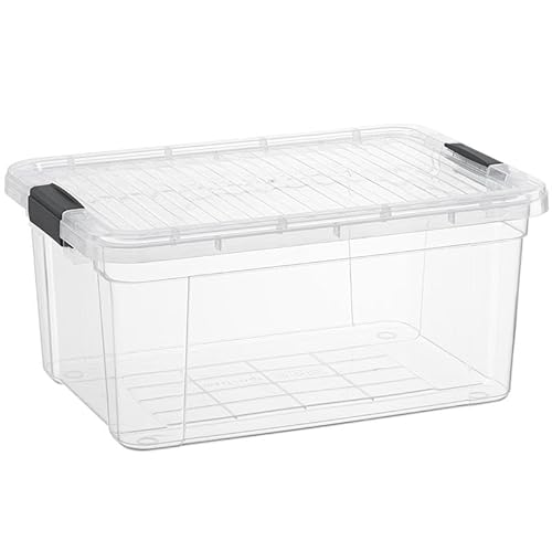 17L Storage Box with Lid Clear Plastic Stackable Container Home Office - UK Made