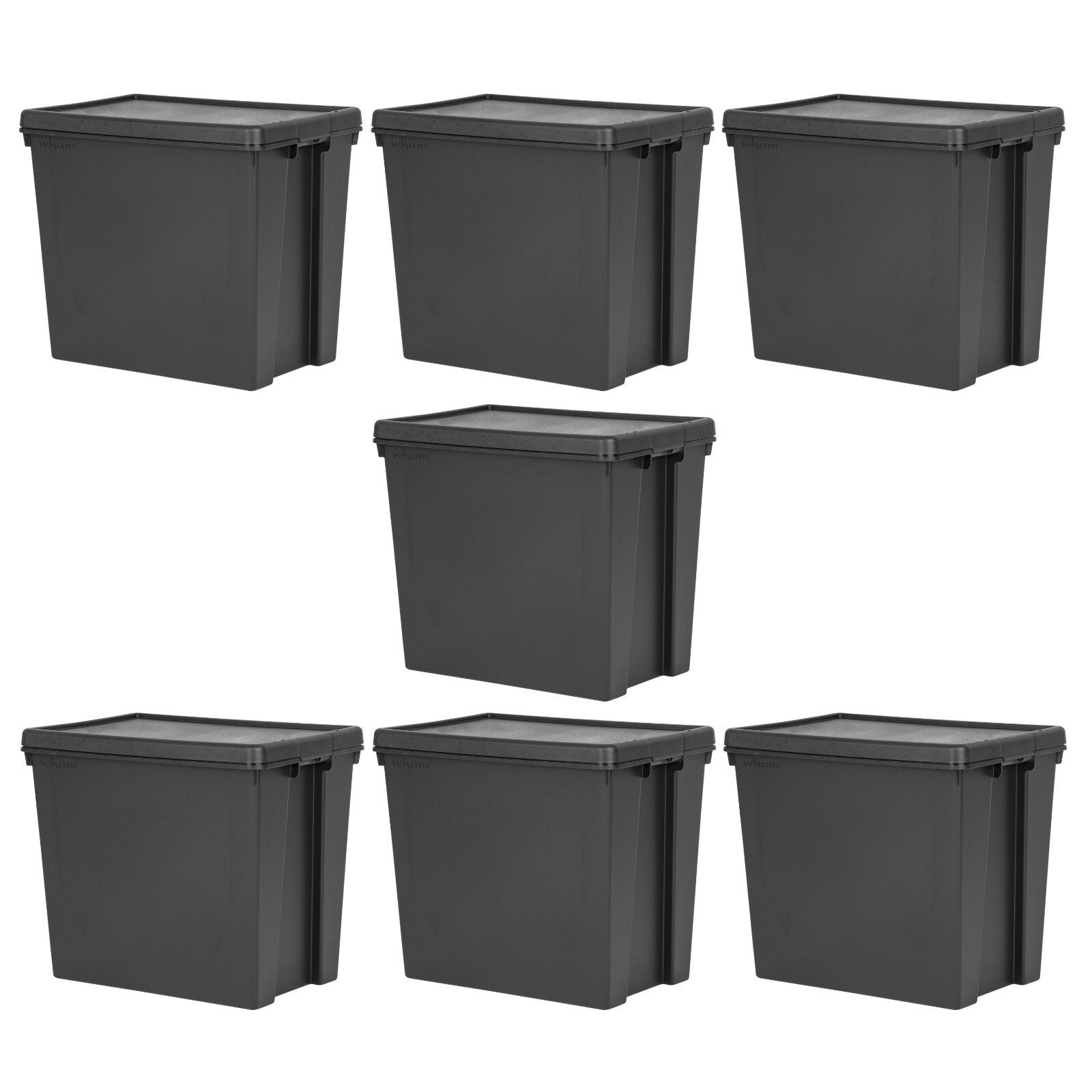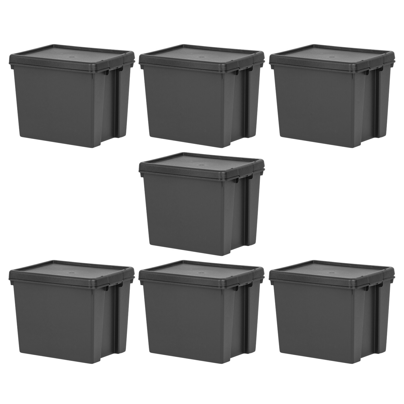 7 x 24L Heavy Duty Black Storage Box Lid Recycled Plastic Stackable Container