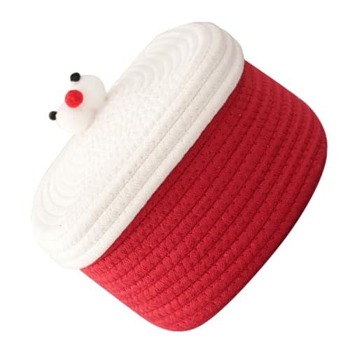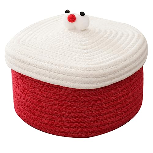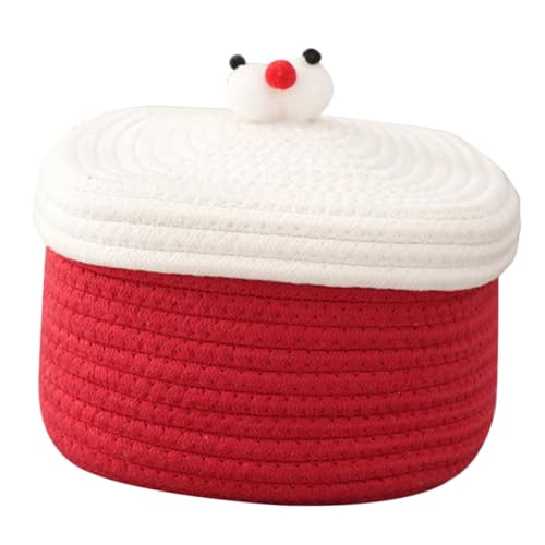 FUNNETOYU Cotton Rope Woven Basket Small Red for Desktop Organization for Storing Sundries Cosmetics Toys Lidded Design Keeps Items Neat and Tidy