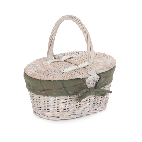 Red Hamper EH062G Wicker Childs White Wash Lidded Lined Picnic Basket with Green Tweed Lining