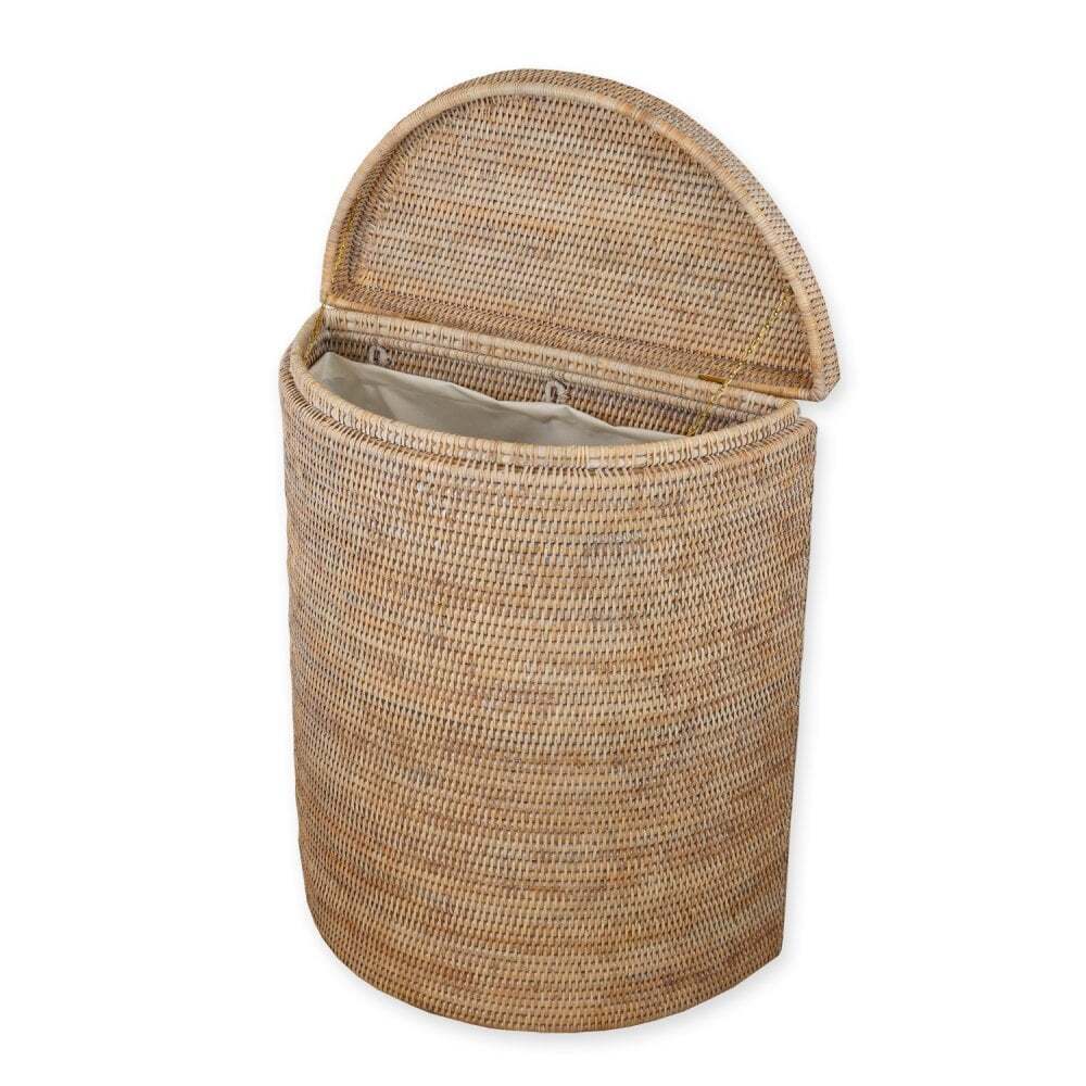 Rattan Halfmoon Wicker Woven Lidded Laundry Hamper Basket Removable Lining