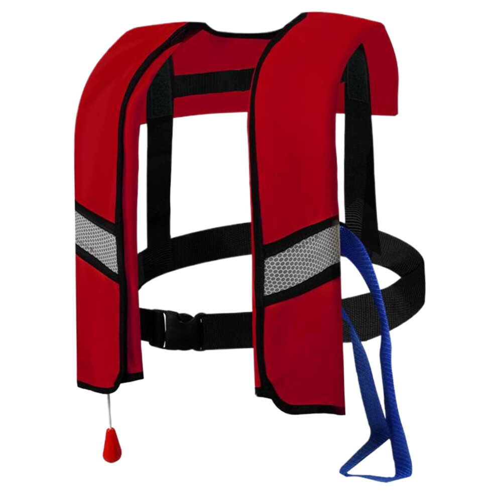 Life Jackets Manual Inflatable Nylon Adjustable Buckle Vest for Adults and Children with Reflective Strips and Whistles, Red