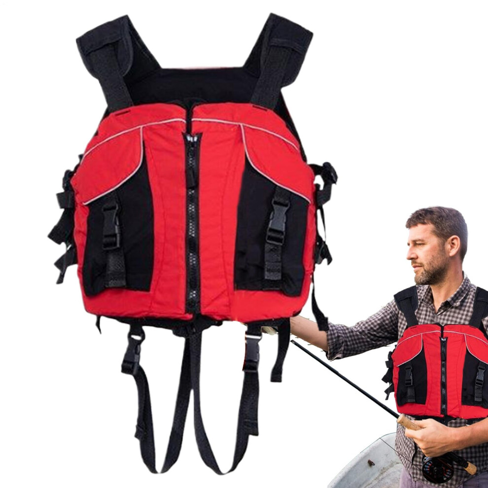 Kayak Life Jackets for Adults Safety Vest Swimming Water Sports Safety Suit with Buoyancy for Rafting Fishing red