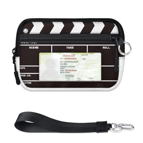 TropicalLife Movie Clapboard Black Wallet for Women Men Kids Girls Boys Movie Purses Mini Zip Card Case with ID Window Lightweight Portable Small Coin Card Organizer Bag
