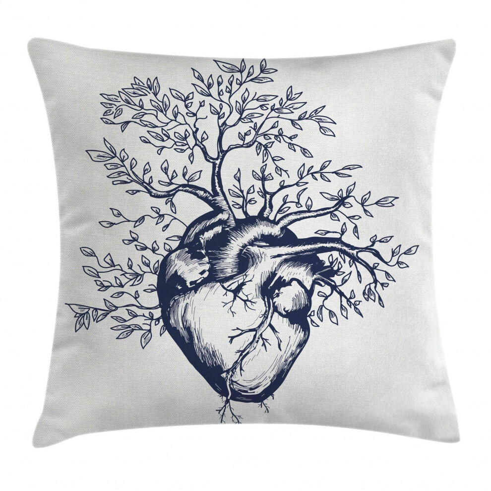 Ambesonne Surrealistic Throw Pillow cushion cover Human Heart Blooming with Tree Leaves Anatomy of Life and Love concept Decorative Square Accent Pi