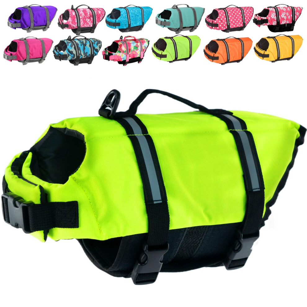 VIVAGLORY Ripstop Dog Life Jacket for Small Medium Large Dogs Boating Swimming Vest for Dogs with Enhanced Visibility & Buoyancy Bright Yellow