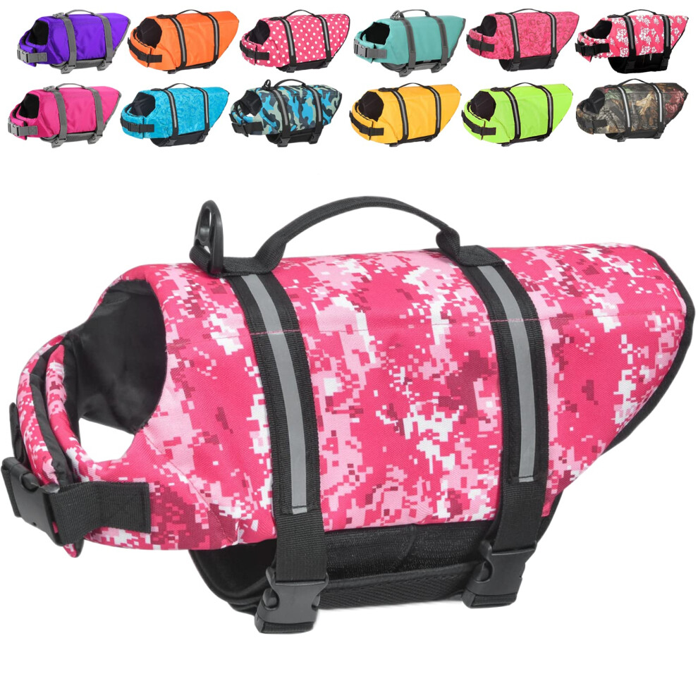 Vivaglory Ripstop Dog Life Vest Reflective & Adjustable Life Jacket for Dogs with Rescue Handle for Swimming & Boating Pink S