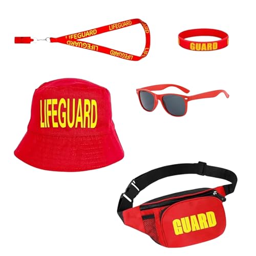 Lifeguard Costume Set,Lifeguard Accessories with Hat,Sunglasses,Whistle,Bum Bag,Hairband,Bracelet,Life Guard Party Outfit,Baywatch Lifeguard Fancy Dress for Men Women Adults Kids Halloween Party