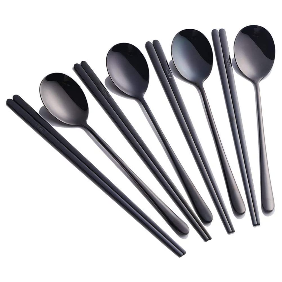 Flatware Set for Convenient Lifestyle, Reusable Flatware Heat Resistant Korean Style Chopsticks for Picnics Camping Buffets Hotpot BBQ