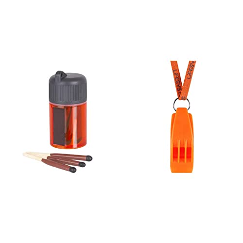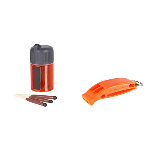 Lifesystems Stormproof, Waterproof And Windproof Matches, Pack Of 25 In Sealed Waterproof Container & Safety And Emergency Whistle With Lanyard for Outdoors, Mountaineering, Boating And Signalling