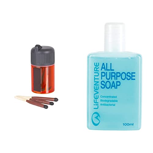 Lifesystems Stormproof, Waterproof And Windproof Matches, Pack Of 25 In Sealed Waterproof Container & Lifeventure All Purpose Biodegradable and PH balanced Bottled Soap