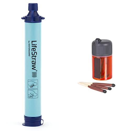 LifeStraw Personal Water Filter, Blue, 1pc & Lifesystems Stormproof, Waterproof And Windproof Matches, Pack Of 25 In Sealed Waterproof Container