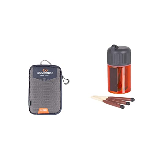 Lifeventure HydroFibre Ultralight And Compact Adventure Sports Towel & Lifesystems Stormproof, Waterproof And Windproof Matches, Pack Of 25 In Sealed Waterproof Container