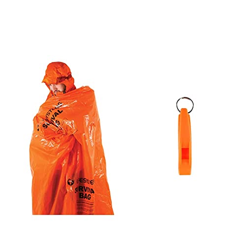 Lifesystems Windproof And Waterproof Orange Survival Bag For 1 to 2 Persons & Echo Whistle With Lanyard For The Outdoors, Camping And Walking