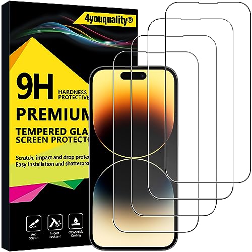 4youquality [4-Pack Screen Protector for iPhone 15 Pro (6.1-Inch), Tempered Glass Film, [LifetimeSupport][Impact-Protection][Anti-Shatter][Anti-Scratch]