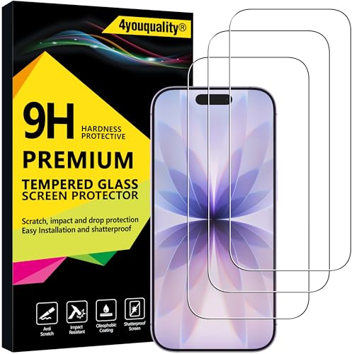 4youquality [3-Pack Screen Protector for iPhone 17/17 Pro / 16 Pro (6.3-Inch), Tempered Glass Film, [LifetimeSupport][Impact-Protection][Anti-Shatter][Anti-Scratch]