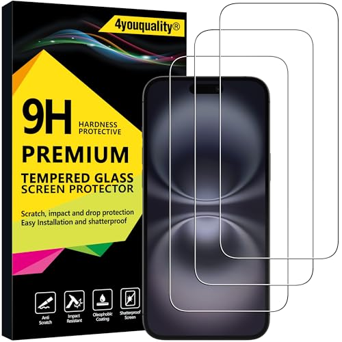 4youquality [3-Pack Screen Protector for iPhone 16 (6.1-Inch), Tempered Glass Film, [LifetimeSupport][Impact-Protection][Anti-Shatter][Anti-Scratch]