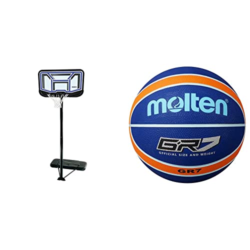 Lifetime 1268 Streamline Portable Basketball System, 7.5 to 10 Foot Telescoping Adjustment & Molten GR Basketball, Indoor/Outdoor, Premium Rubber, Size 6, Impact Colour Blue/Orange, (BGR7-NOR)