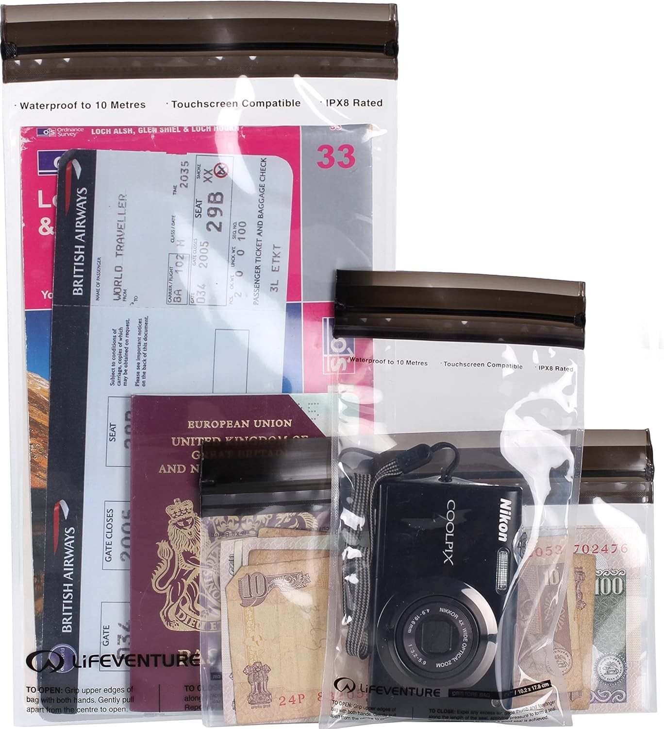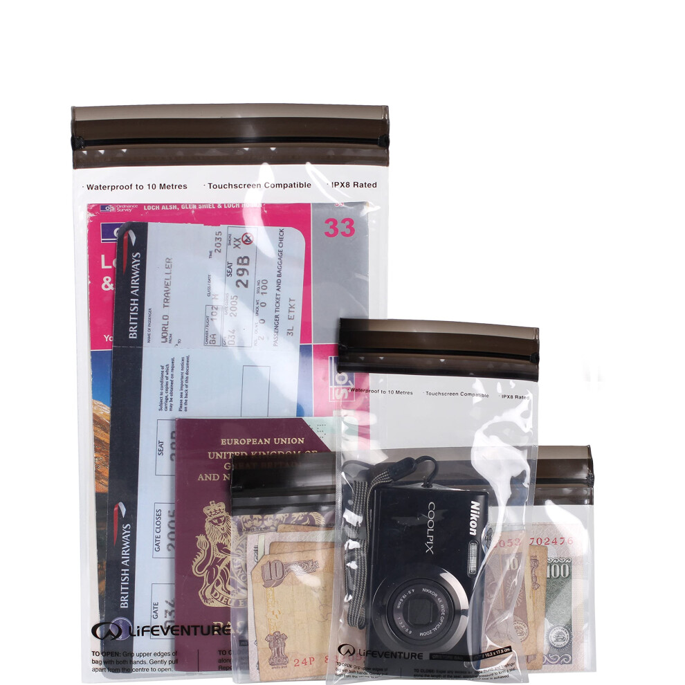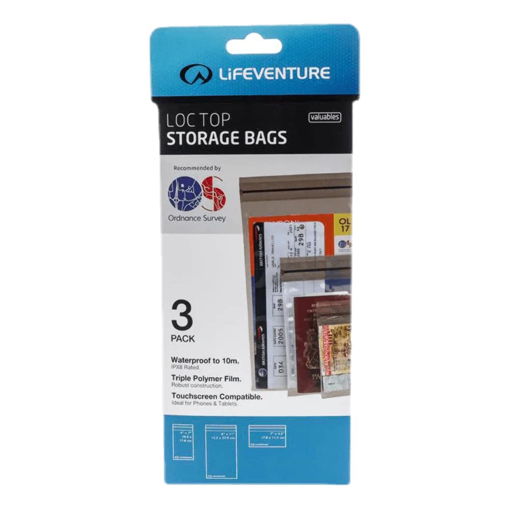 Lifeventure DriStore LocTop Waterproof Bags (3-Pack) For Valuables Waterproof Dry Bags For Small Items Mobile Phone Pouch Kayak Military Sailing Holiday