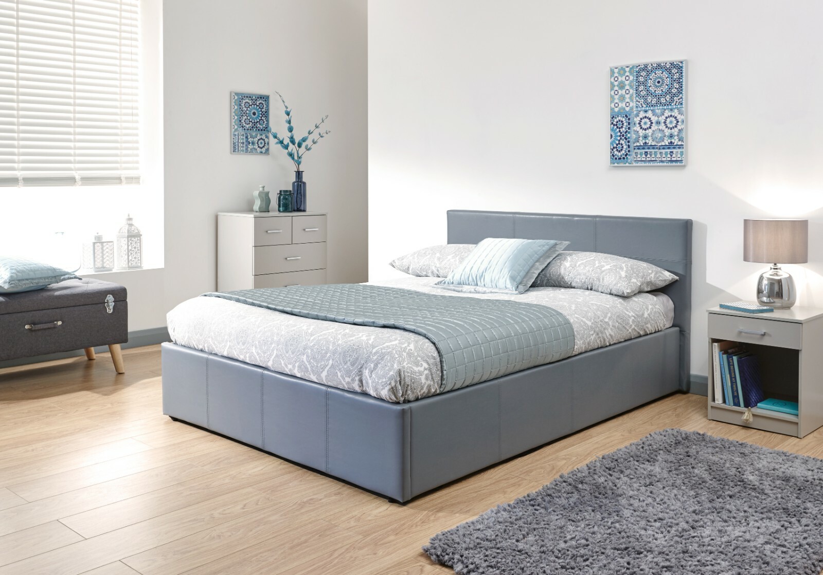 Grey End Lift 5ft King Ottoman faux leather gas lift up storage bed