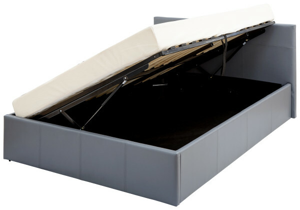 Side Lift Double Ottoman Grey faux leather 4ft 6 gas lift up storage bed