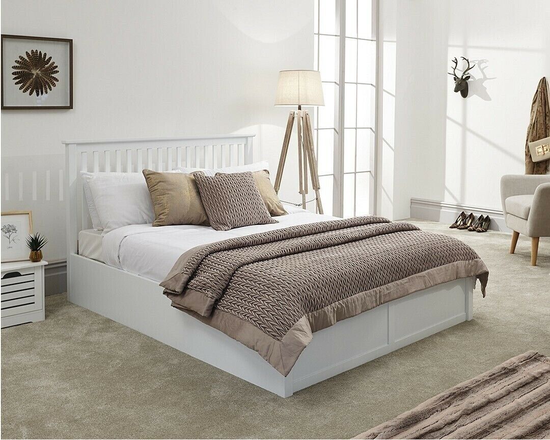 White Wood Ottoman Gas Lift up Storage Shaker Bed Como Double 4ft 6