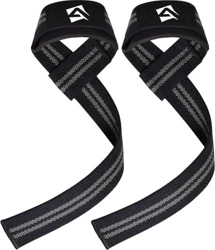 AQF Weight Lifting Straps, 100% Cotton Gym Wrist Straps, 60CM Heavy Duty Lifting Straps with 5MM Neoprene Padding, Non-Slip Advanced Gel Grip, Ideal for Deadlifts, Powerlifting & Strength Training