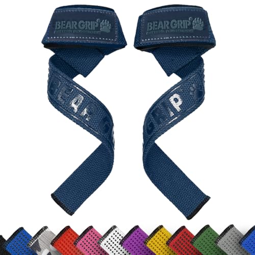 BEAR GRIP Straps - Premium Neoprene padded Heavy Duty double stitched weight lifting gym straps, Gel grip, 100% cotton, Extra long length (Navy Blue)