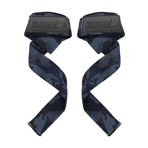 BEAR GRIP Straps - Premium Neoprene Padded Heavy Duty Double Stitched Weight Lifting Gym Straps, Deadlift, Gym Accessories for Men and Women, Advanced Gel Grip, 100% cotton, Extra long length (Camo)