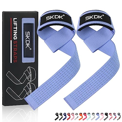 DEYOU Lifting Straps Wrist Straps for Strength Training, Bodybuilding & Fitness - Padded 100% Cotton with Mesh Bag for Men and Women, Gym Lifting Accessories, Also for Narrow Wrists (Pastel Blue)